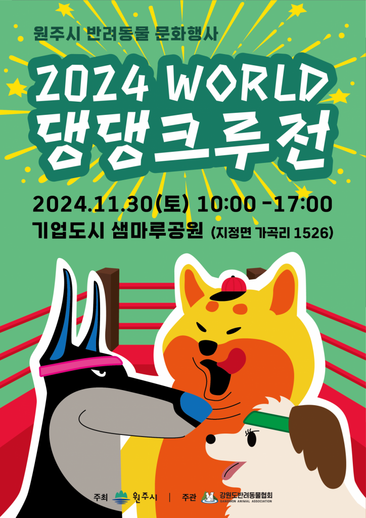 오는 30일 열리는 하반기 행사는 ‘월드댕댕크루전’을 주제로, 올바른 반려동물 문화 정착과 겨울철 외부 활동이 적어지는 반려견 운동을 통해 건강 증진에 대한 의식을 높이기 위해 추진됐다.