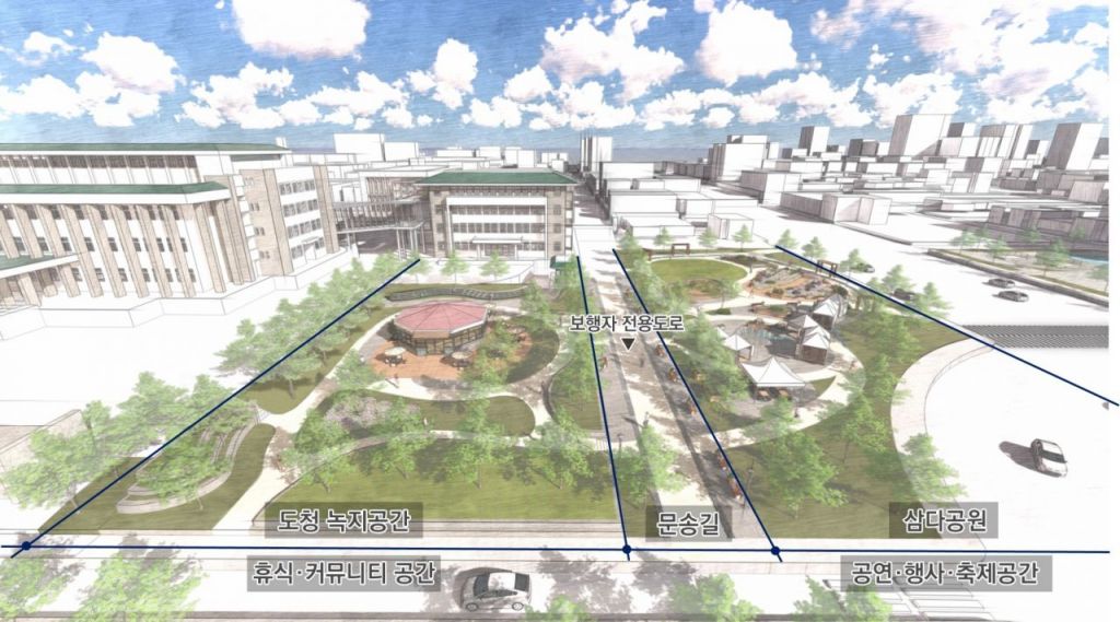 안전하고 쾌적한 보행환경을 마련하고 기후 위기 대응을 위한 탄소중립을 실천하는 한편, 지역주민들과 민원인들이 쉬며 즐길 수 있는 녹지와 문화복합공간으로 꾸며진다.