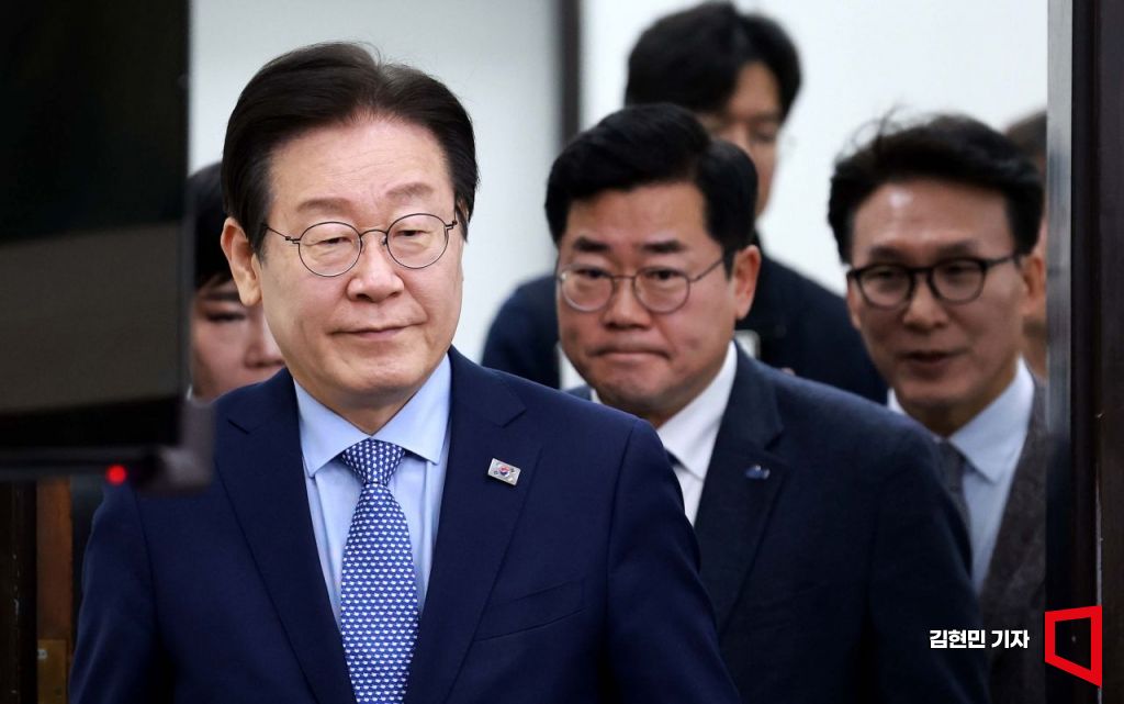 이재명 더불어민주당 대표가 27일 국회에서 열린 최고위원회의에 참석하고 있다.