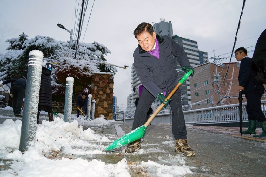 이날 이필형 동대문구청장도 제설현장을 찾아 이면도로와 보도에 쌓인 눈을 함께 치우며 직원들을 격려했다.