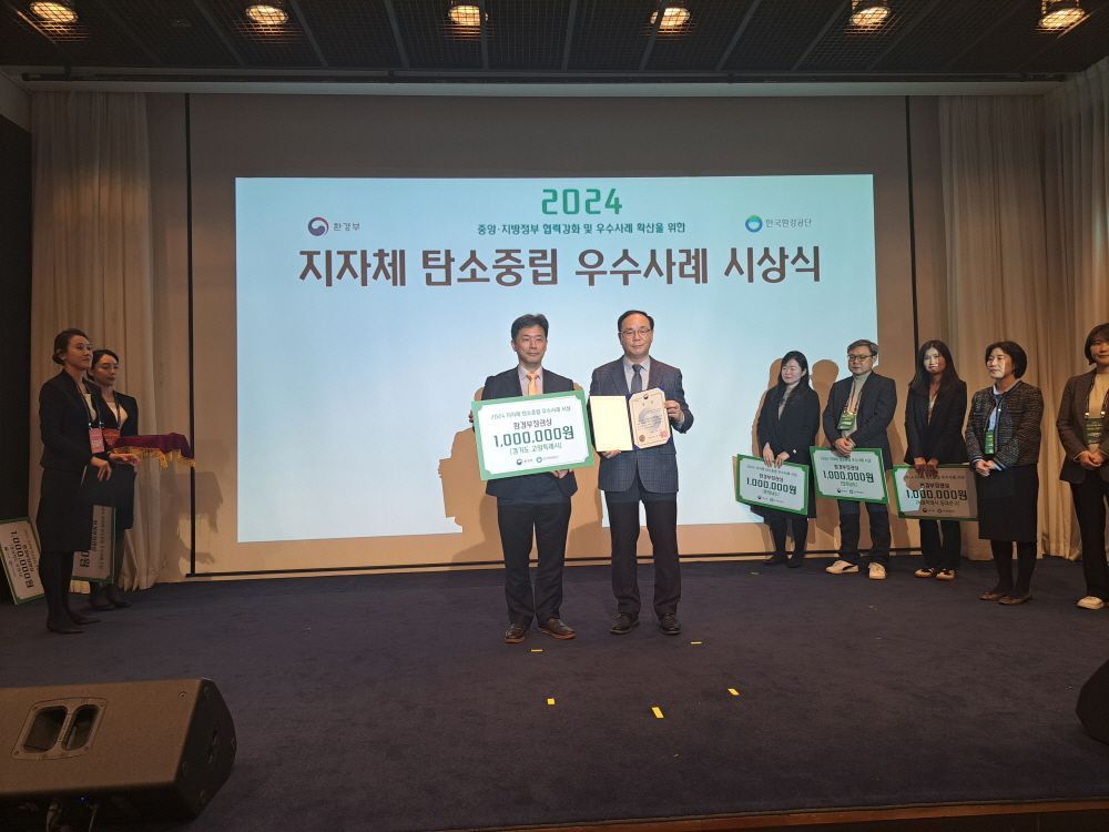 고양시가 환경부와 한국환경공단이 주관하는 2024년 지자체 탄소중립 우수사례 우수 기관으로 선정돼 환경부 장관 기관 표창을 수상하고 있다. 고양특례시 제공