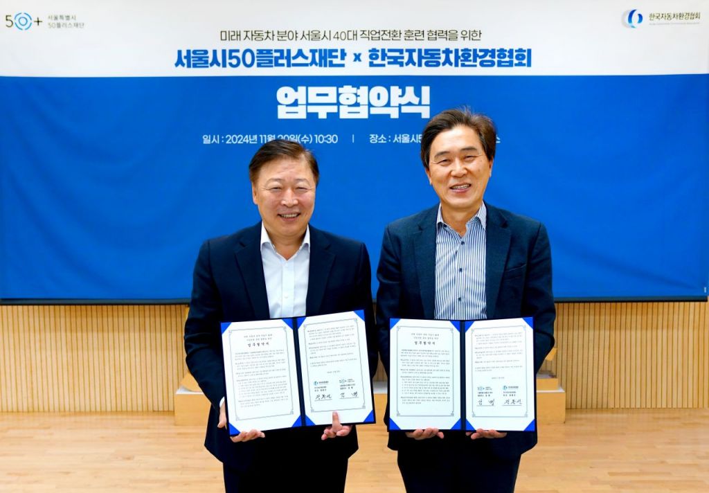 29일 서울시는 산하 서울시50플러스재단과 한국자동차환경협회가 업무협약을 맺고 직업전환 교육훈련 모델 발굴에 협력한다고 밝혔다.