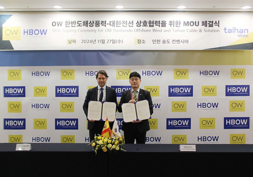 대한전선은 스페인 해상풍력 발전사업 전문기업 오션윈즈와 한반도 해상풍력 발전사업 상호협력을 위한 양해각서(MOU)를 체결했다고 29일 밝혔다.