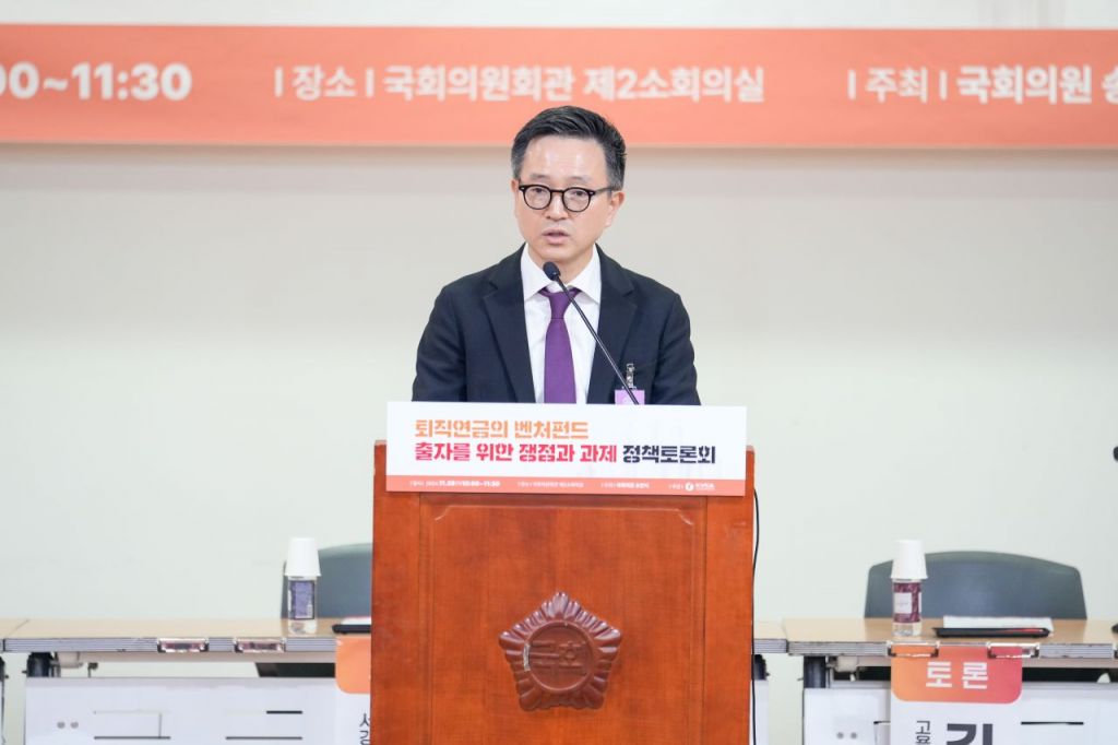 개회사에서 송언석 의원은 “고령화에 따라 퇴직연금의 안정성과 수익성을 균형 있게 고려한 운용 전략을 고민할 필요가 있으며, 그 결과 중 하나로 벤처펀드 출자 방안을 논의하는 토론회가 마련돼 이를 바탕으로 퇴직연금 제도의 발전을 위한 대안 마련에 함께 하겠다”고 했다. 윤건수 VC협회 회장은 “원금 보장은 물가상승률과 통화량 증가를 함께 고려해야 하는데, 현재의 퇴직연금 수익률은 물가상승률에도 못 미치는 수준으로, 벤처펀드 출자를 통해 획기적으로 수익률 개선을 도모할 수 있다”고 말했다.