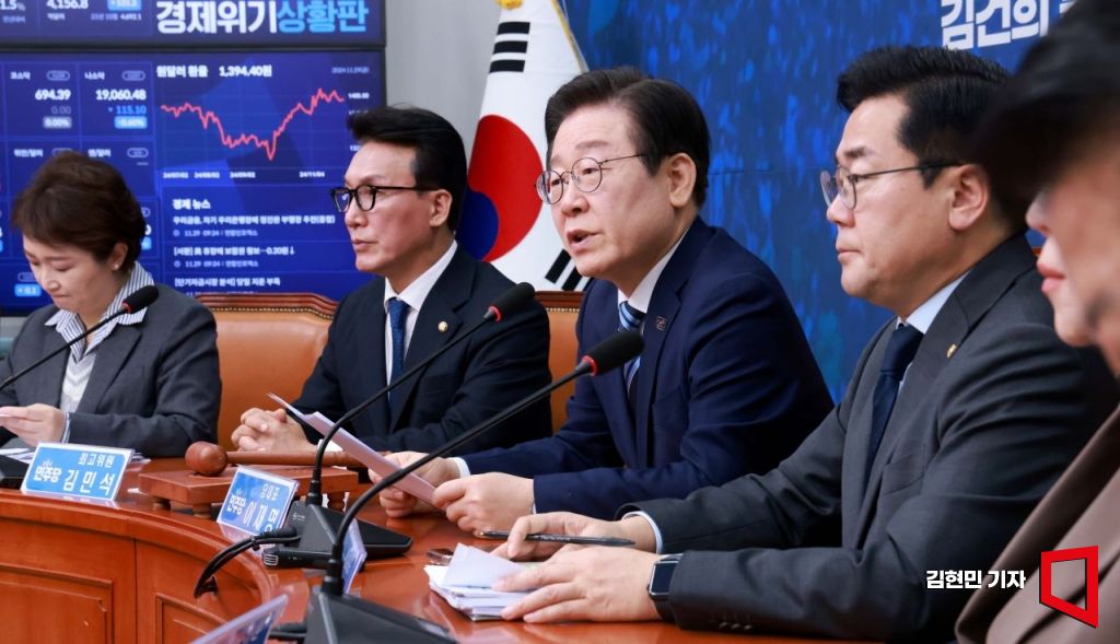 이재명 더불어민주당 대표가 29일 국회에서 열린 최고위원회의에서 발언하고 있다.