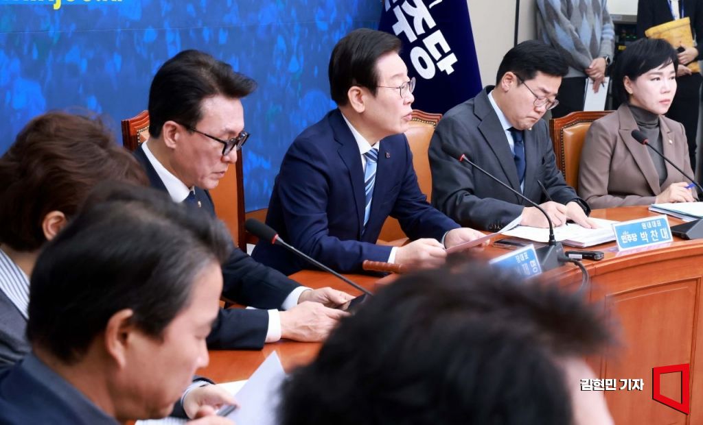 이재명 더불어민주당 대표가 29일 국회에서 열린 최고위원회의에서 발언하고 있다.