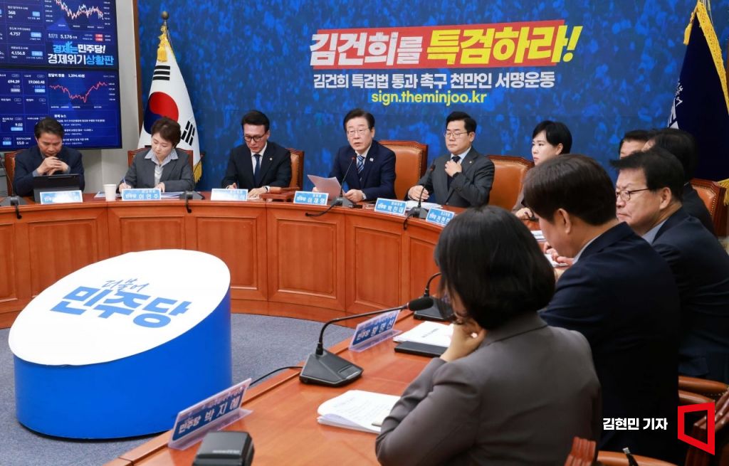 이재명 더불어민주당 대표가 29일 국회에서 열린 최고위원회의에서 발언하고 있다.