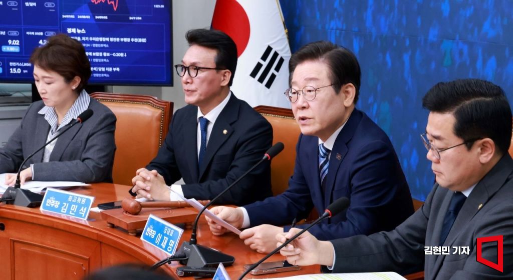 이재명 더불어민주당 대표가 29일 국회에서 열린 최고위원회의에서 발언하고 있다.
