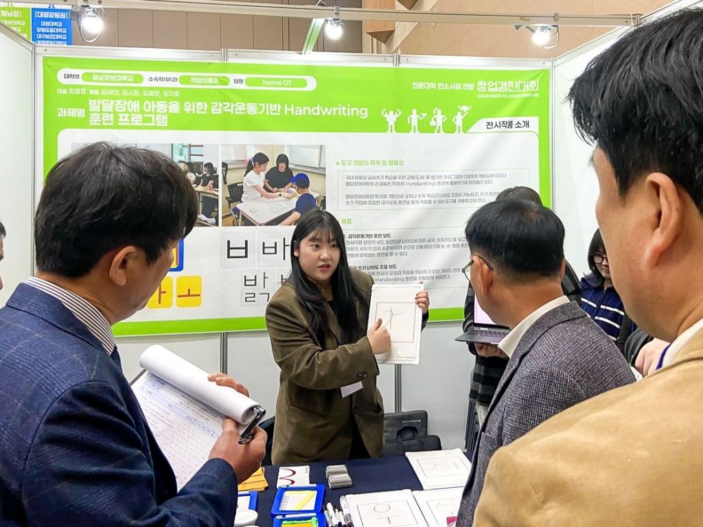 작업치료과 창업동아리 HomeOT 학생들은 발달 장애아동의 Handwriting 향상을 위한 한글쓰기 난이도 조절 보드와 감각운동 기반 훈련보드를 개발했다. 이 도구들을 활용한 멘토링 프로그램을 통해 높은 평가를 받아 주관대학 총장상을 받았다.