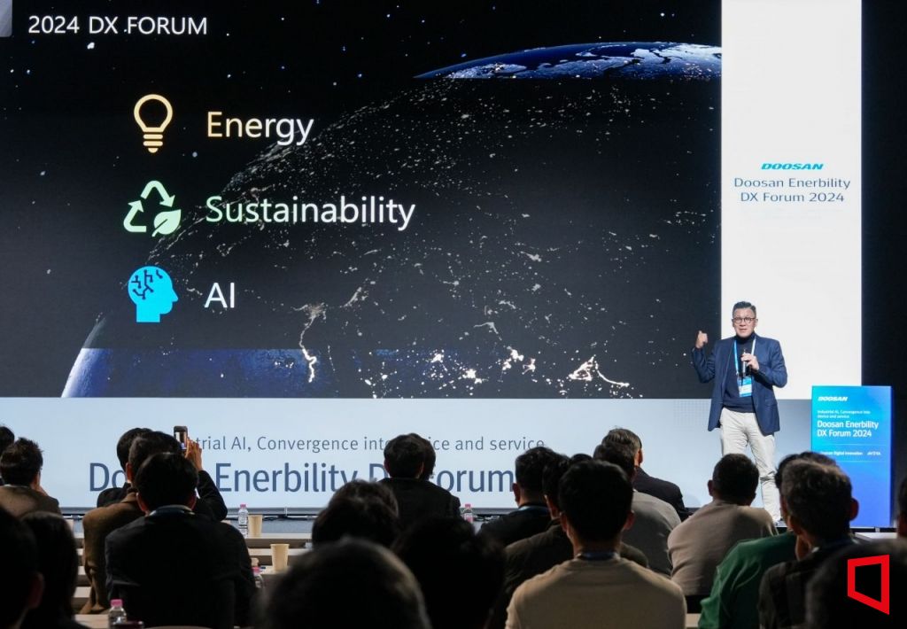 두산에너빌리티는 29일 분당두산타워에서 '산업 AI, 기기와 서비스의 융복합'을 주제로 ‘DX(디지털전환) 포럼 2024'를 개최했다고 29일 밝혔다.