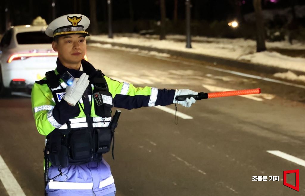 오후 10시께 서울 마포구 강변북로 인근 서울월드컵경기장 진입로에서 음주운전 단속이 이뤄졌다. 이날 서울 마포구의 날씨는 영하 1~2도. 전날 내린 기록적인 폭설로 도로 곳곳엔 눈이 남아있었고, 찬 바람도 매섭게 불었다. 순찰차에서 내린 김 순경은 양손에 입김을 불었다. 그는 “선배들은 잘 아셔서 두꺼운 방한 장갑을 챙겨 나오셨는데, 저는 깜빡하고 안 챙겨서 얇은 장갑을 끼고 있다”고 머쓱해했다.