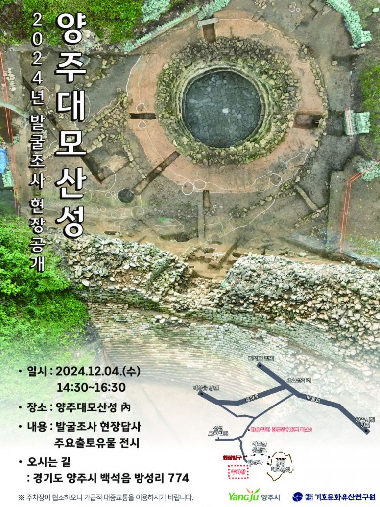 경기 양주시(시장 강수현)가 오는 12월 4일 재단법인 기호문화유산연구원(원장 고재용)과 함께 ‘양주대모산성 14차 발굴 조사 현장 공개회’를 개최한다고 29일 밝혔다.