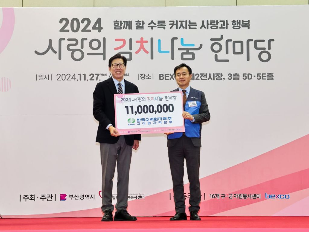 한국수력원자력 고리원자력본부(본부장 이광훈)가 지난 27일 BEXCO 제2전시장에서 진행된 ‘2024 사랑의 김치나눔 한마당’에 참여해 1100만원을 후원했다.