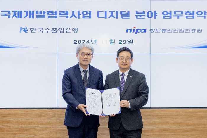 한국수출입은행이 지난 29일 여의도 본점에서 정보통신산업진흥원(NIPA)과 ‘국제개발협력사업 디지털 분야 상호협력 업무협약서’를 체결했다고 1일 밝혔다.