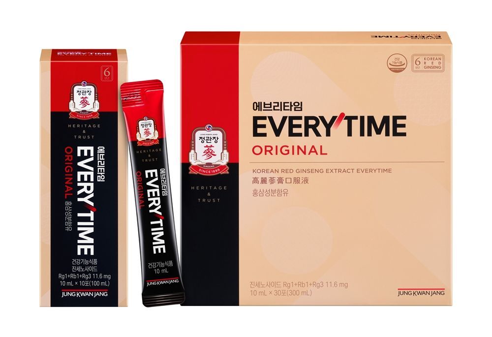 에브리타임은 2012년 업계 최초로 홍삼을 스틱형으로 선보이며 간편 홍삼의 시대를 연 정관장의 대표 브랜드다. 간편함과 섭취 편의성을 추구하는 젊은 소비자들의 니즈와 맞아떨어지면서 지난 12년간 1조5598억원의 누적 매출액을 올리는 등 한국을 대표하는 건강기능식품으로 자리매김했다.