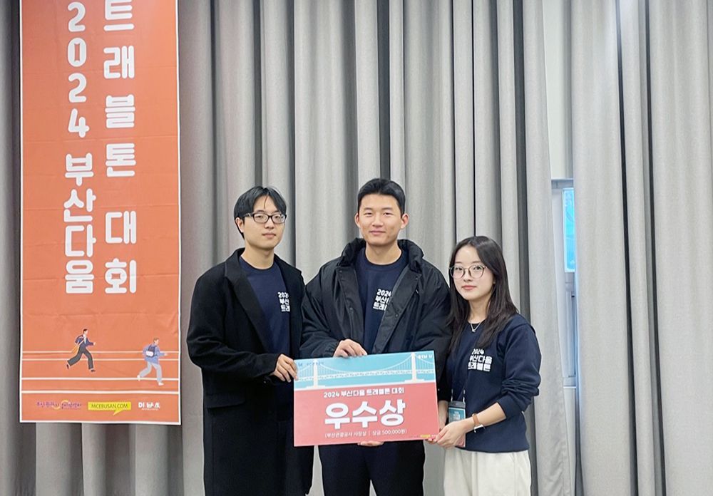 국립부경대학교와 경상국립대학교 학생 연합팀이 2024 부산다움 트래블톤 대회에서 우수상을 수상했다.