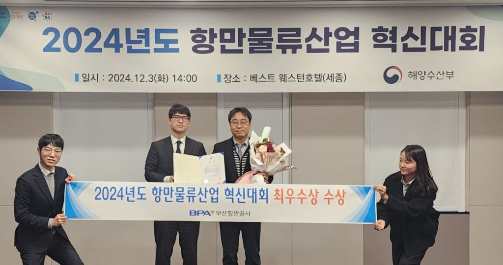 부산항만공사(BPA, 사장 강준석)는 해양수산부 주최 ‘2024년도 항만물류산업 혁신대회’에서 항만물류산업 혁신을 이끈 기관으로 선정돼 3일 최우수상을 받았다고 전했다.
