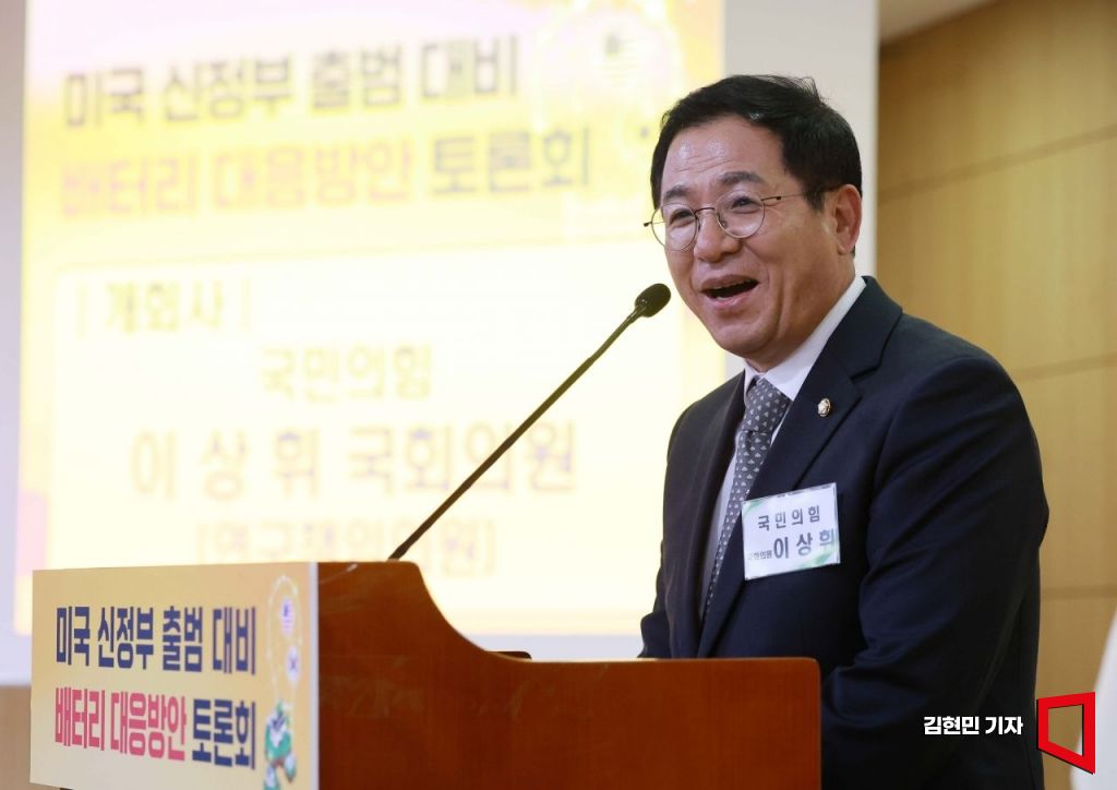 이상휘 국민의힘 의원이 3일 국회 의원회관에서 열린 이차전지포럼 주최 '미국 신정부 출범 대비 배터리 대응방안 토론회'에서 개회사를 하고 있다.
