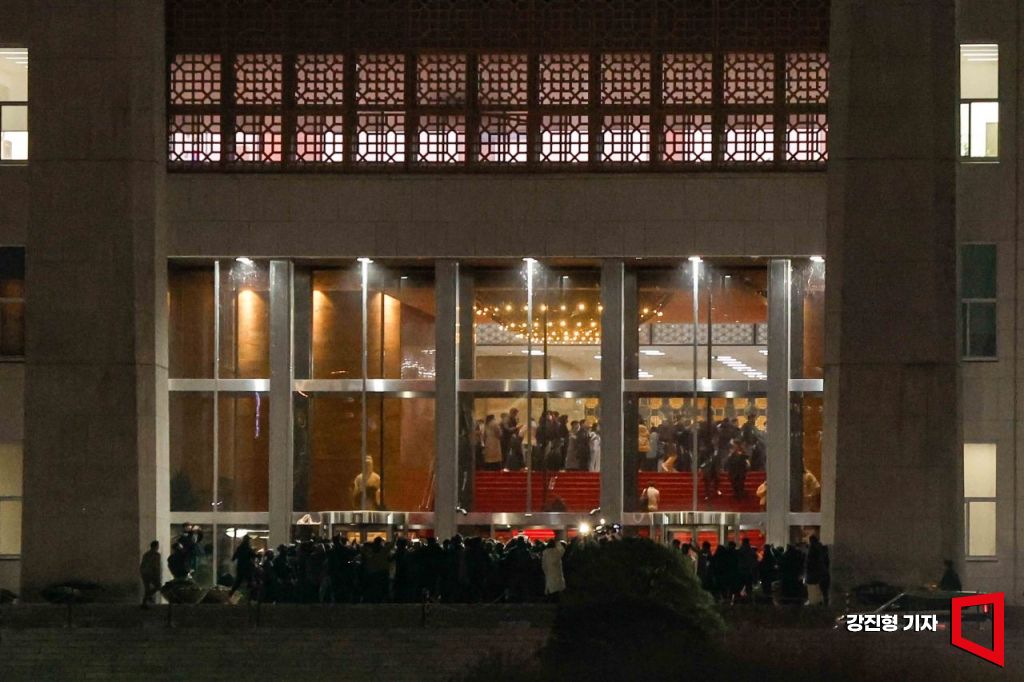 윤석열 대통령이 비상계엄을 선포한 가운데 4일 서울 여의도 국회에서 공수부대가 본회의장 진입을 시도하고 있다.
