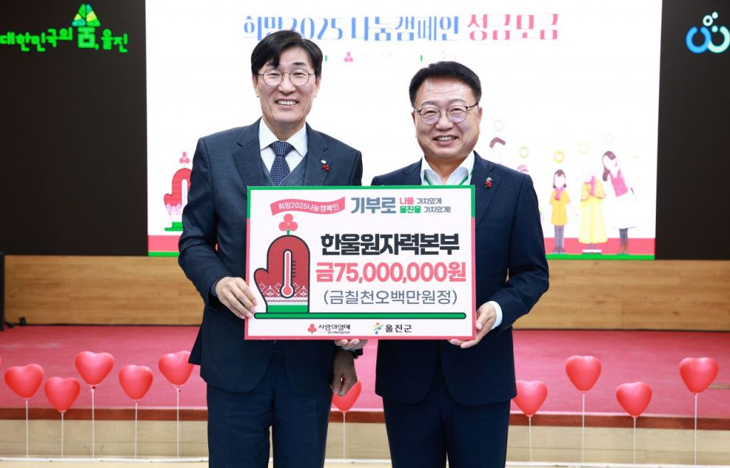 한국수력원자력 한울원자력본부는 지난 3일 지역주민이 따스한 겨울을 보내는 데 보탬이 되고자 직원들이 직접 러브펀드에 모금한 성금 7500만원을 ‘희망 2025 나눔캠페인’에 전달했다.