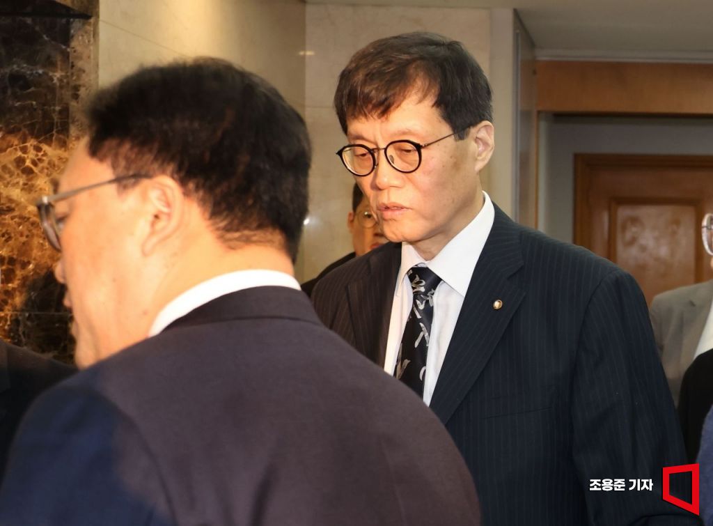 이창용 한국은행 총재(오른쪽)와 김병환 금융위원장이 4일 서울 중구 은행연합회에서 비공개로 열린 긴급 거시경제금융현안간담회를 마치고 굳은표정으로 회의장을 나서고 있다.