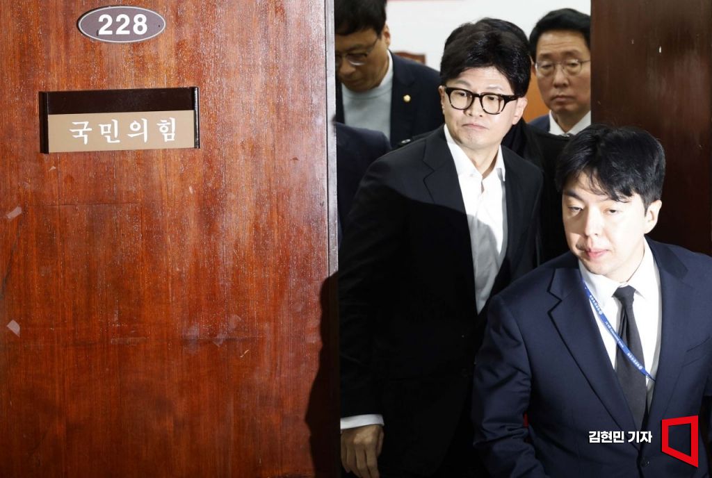 [포토] 비공개 최고위 마치고 나오는 한동훈
