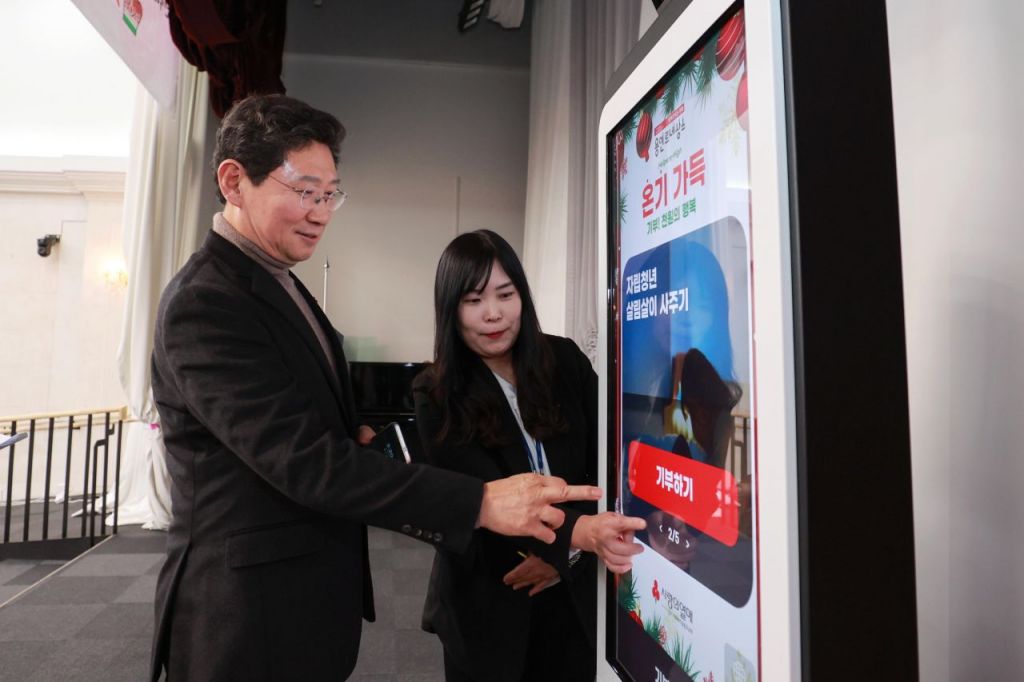 이날 제막식에서는 '기부 키오스크'가 첫선을 보였다. 기부 키오스크는 시민들이 신용카드, 삼성페이 등 스마트 결제 시스템을 활용해 편리하게 기부할 수 있으며, 1000원부터 시작해 자유로운 기부 금액과 기부 테마를 선택할 수 있다. 기부 후에는 기부 인증샷 등 기부자의 핸드폰으로 다양한 콘텐츠도 제공한다. 이 시장은 기부 키오스크 제1호 기부자로 참여했다.