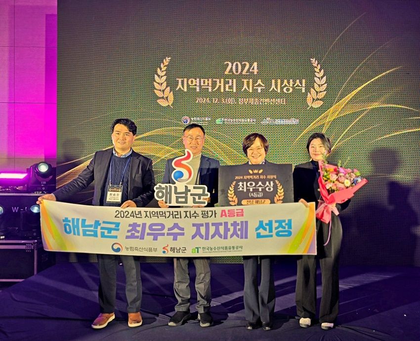 전남 해남군이 지난 3일 정부 세종컨벤션센터에서 열린 지역 먹거리 지수 시상식에서 최우수 지자체로 선정돼 농식품부 장관상을 받았다.