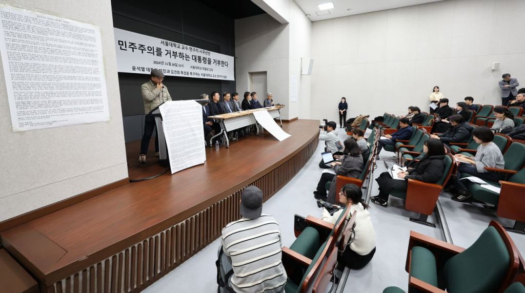 전국 국공립대 교수회 회장들이 윤석열 대통령의 비상계엄 선포를 규탄하며 탄핵을 촉구했다.