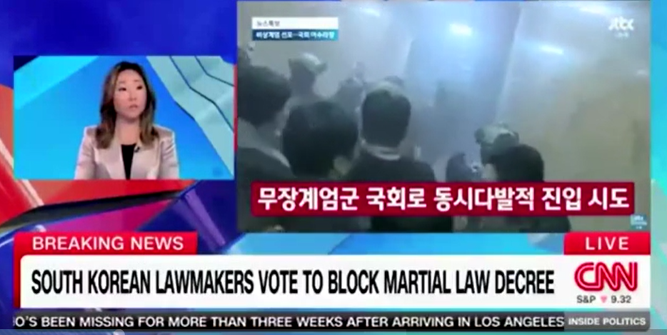 특파원 MJ 리가 한국의 계엄령 상황에 대해 설명하고 있다. CNN 캡처
