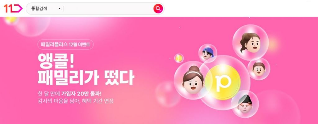 11번가는 패밀리플러스 가입 20만명 돌파를 기념해 12월 패밀리 구매 목표 달성 시 받을 수 있는 11페이 포인트를 2배로 지급하는 이벤트를 진행한다. 신규 멤버를 패밀리로 초대 시 추첨을 통해 초대자와 신규 멤버 모두 각각 1만 포인트를 제공하는 이벤트도 함께 진행한다.