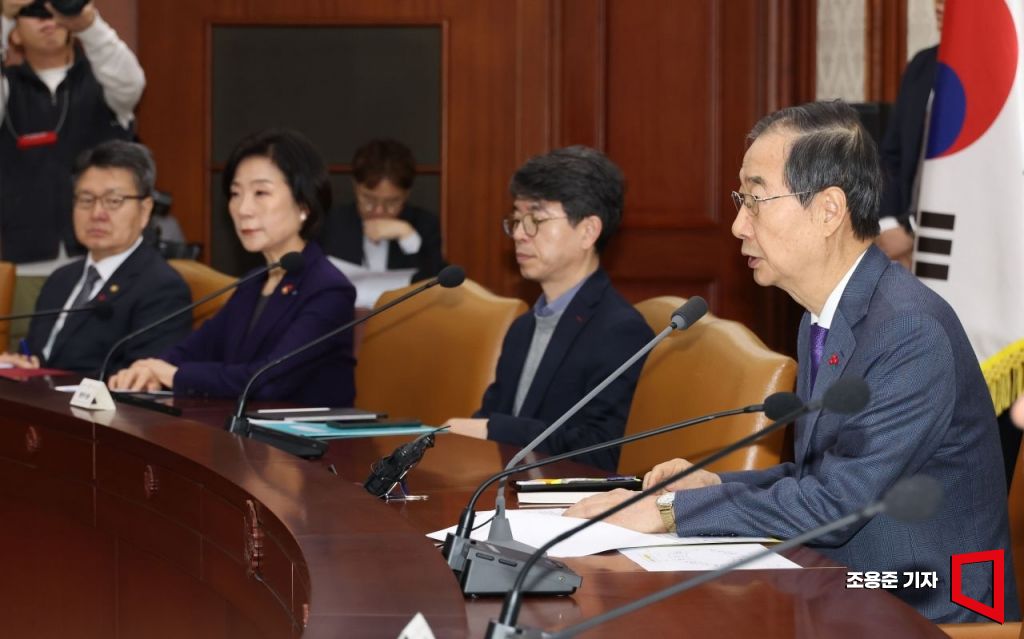한덕수 국무총리가 5일 서울 종로구 정부서울청사에서 열린 국정현안관계장관회의에서 발언하고 있다.