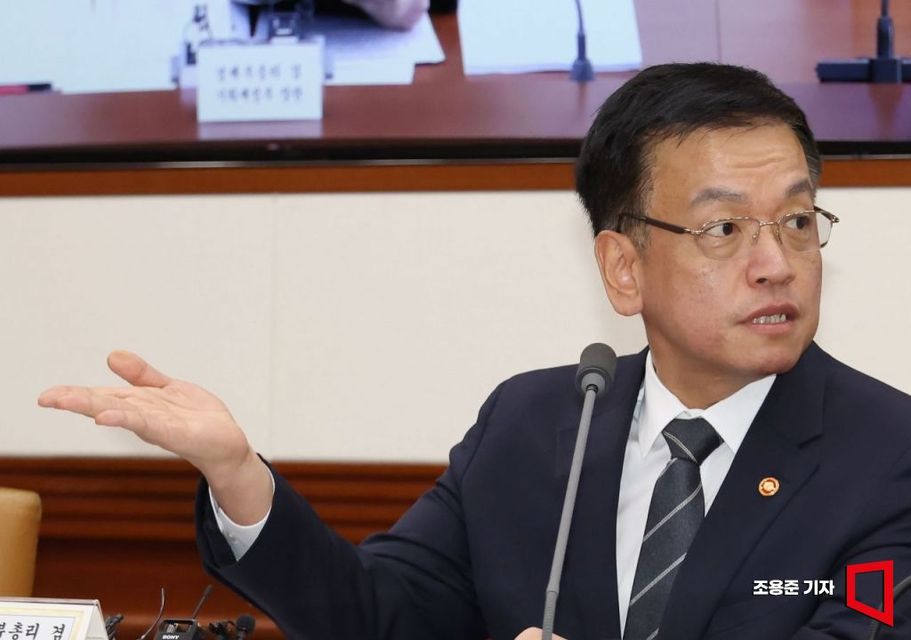 최상목 경제부총리 겸 기획재정부 장관이 5일 서울 종로구 정부서울청사에서 국무위원들 사의 표명 후 처음 열린 경제관계장관 회의에서 발언하고 있다.