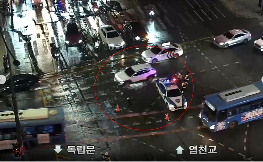 서울 서대문역 사거리에서 상수도관 파열로 누수가 발생해 교통이 통제됐다.