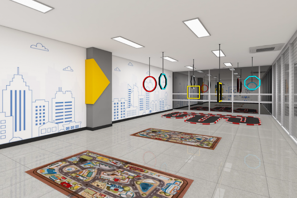 2층 교육센터에는 ▲사무공간, ▲드론 비행 시뮬레이터, ▲드론 조종 체험장, ▲이론 교육장이 설치될 예정이며 1층 실내 드론 비행장에서는 5층 층고의 비행공간과 함께 실내 드론 비행을 위한 안전시설과 정비 공간이 조성될 예정이다.