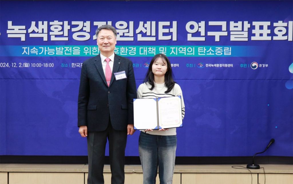 국립부경대학교 지구환경시스템과학부 환경공학전공 김세은 석사과정생이 2024 녹색환경지원센터 연구발표회에서 우수포스터발표상을 수상했다.