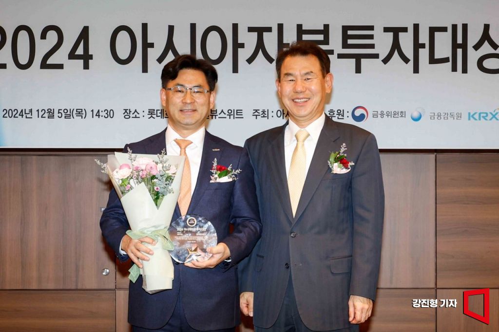 양원택 한국투자증권 투자상품 본부장이 5일 서울 중구 롯데호텔에서 열린 '2024 아시아자본투자대상 시상식'에서 WM부문 한국거래소 이사장상을 수상하고 있다.