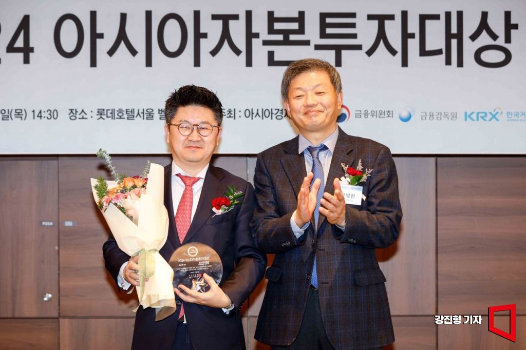신재광 삼성자산운용 멀티에셋운용 본부장이 5일 서울 중구 롯데호텔에서 열린 '2024 아시아자본투자대상 시상식'에서 베스트 펀드 부문 아시아경제 대표상을 수상하고 있다.