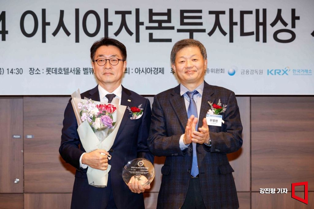 손수진 미래에셋자산운용 WM연금마케팅부문 대표가 5일 서울 중구 롯데호텔에서 열린 '2024 아시아자본투자대상 시상식'에서 베스트 운용사 부문 아시아경제 대표상을 수상하고 있다.