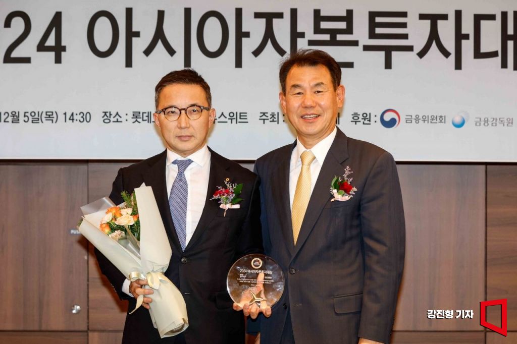 나유석 대신증권 IB담당이 5일 서울 중구 롯데호텔에서 열린 '2024 아시아자본투자대상 시상식'에서 IB부문 한국거래소 이사장상을 수상하고 있다.
