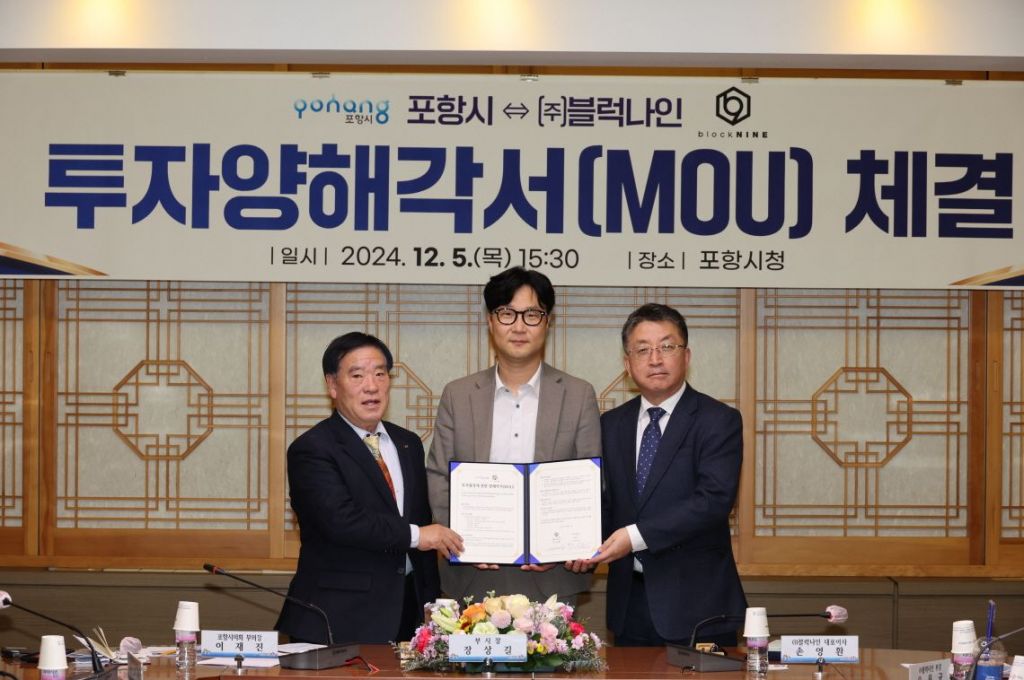 장상길 부시장은 “블럭나인의 이번 투자는 포항 지역 경제에 새로운 성장 동력을 확보하고 미래 산업을 육성하는 계기가 될 것”이라며 “포항시는 블럭나인의 성공적인 사업 확장을 위해 전폭적인 지원을 아끼지 않겠다”고 말했다.