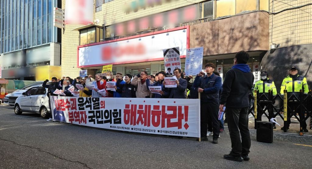 본부는 지난 4일부터 6일 매일 오후 6시부터 창원시청 앞 광장에서 윤 대통령의 비상계엄 선포를 규탄하고 퇴진을 촉구하는 집회를 열고 있다.
