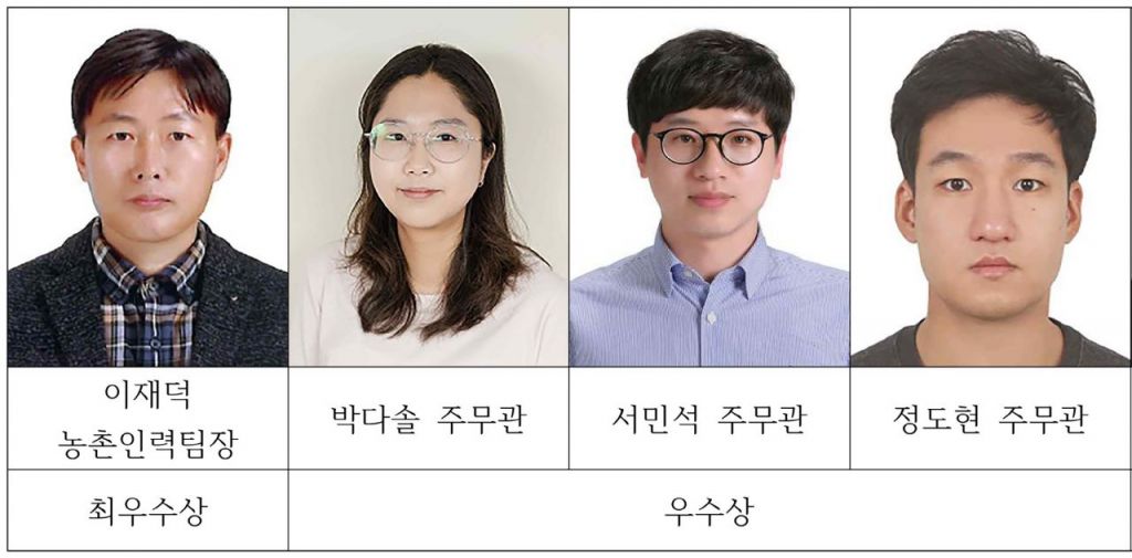 최우수상으로 선정된 농업정책과 이재덕 농촌인력팀장은 외국인 계절근로자 유치와 관련해 실무팀을 구성해 필리핀 현지 직접 방문 등 적극적인 노력을 기울인 결과, 안정적인 해외인력 확보와 무단이탈 근로자 감소라는 성과를 거둬 높은 평가를 받았다.