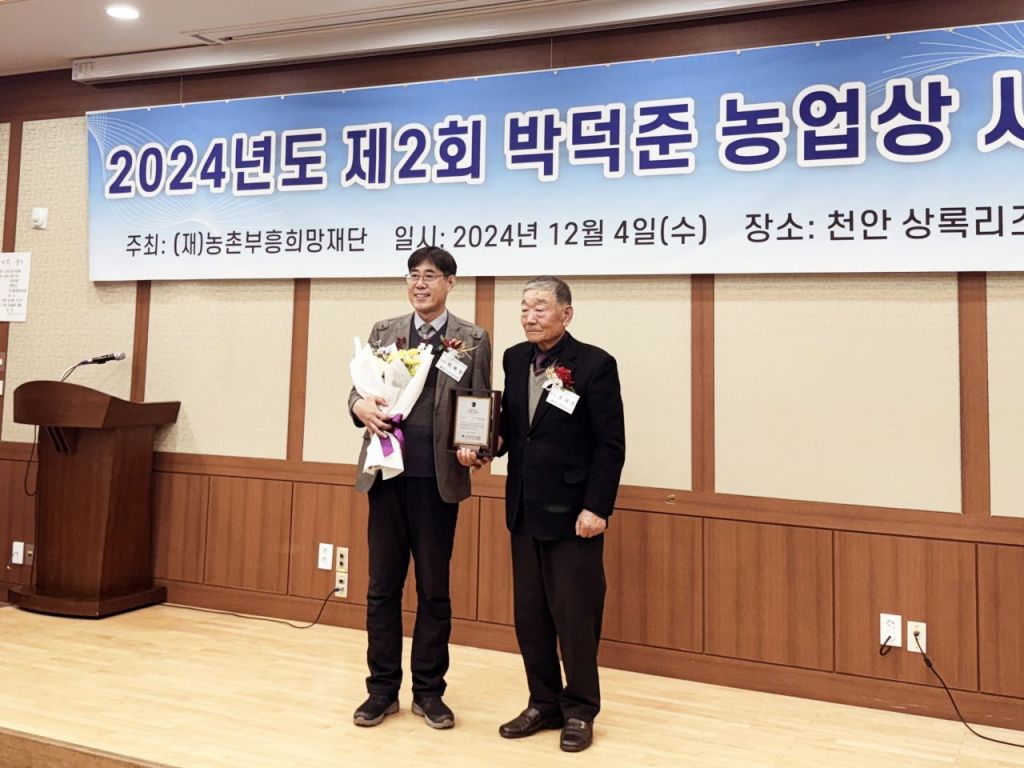 여주시농업기술센터 이화영 팀장이 지난 4일 제2회 박덕준 농업상 '기술상'을 수상한 뒤 기념촬영을 하고 있다. 여주시 제공