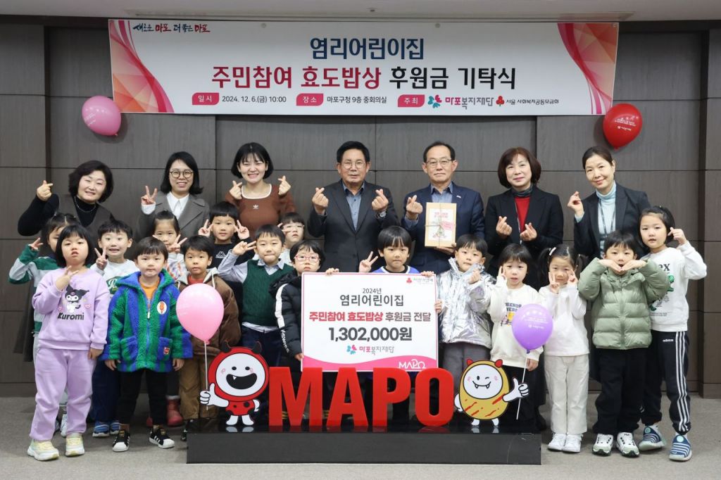 이번 기탁식에는 박강수 마포구청장을 비롯해 후원자인 염리어린이집 장경자 원장과 원아 17명 등이 참석해 따뜻한 나눔을 함께했다.