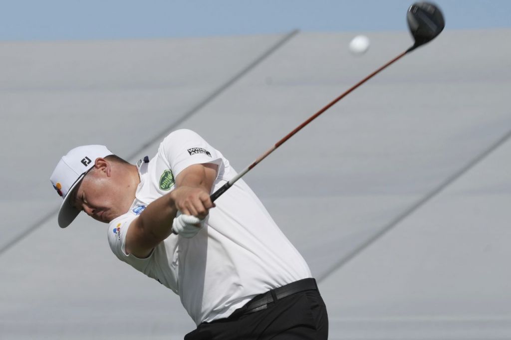 임성재가 히어로 월드 챌린지 1라운드 4번 홀에서 티샷을 하고 있다. 바하마=AP·연합뉴스