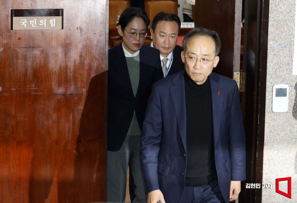 추경호 국민의힘 원내대표가 4일 국회에서 열린 최고위원회의를 마치고 나오고 있다. 김현민 기자