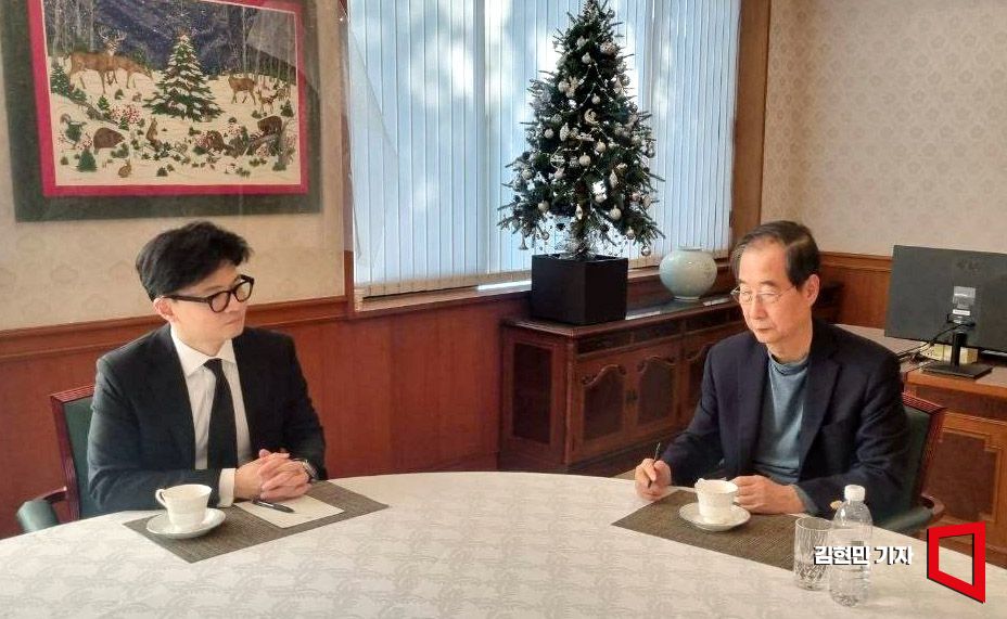한덕수 국무총리와 한동훈 국민의힘 대표가 8일 윤석열 대통령의 임기 단축을 위한 '질서있는 퇴진' 로드맵 등 국정 수습 방안을 논의한다. 회동은 이날 오전 11시 서울 여의도 국민의힘 중앙당사에서 진행된다.