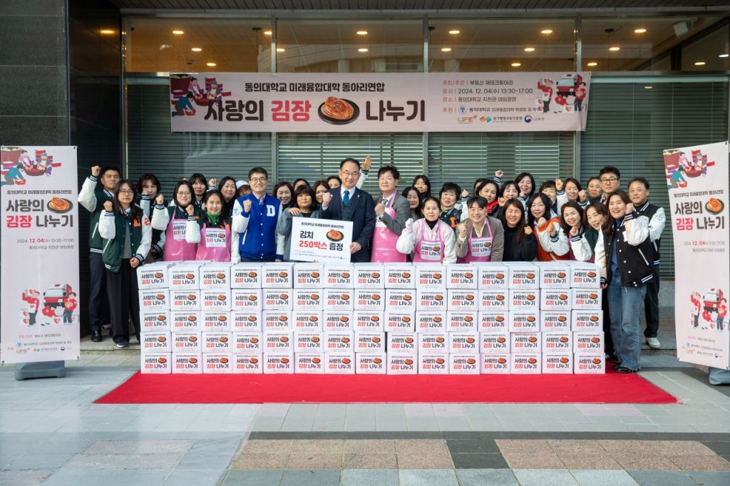 동의대 미래융합대학은 이날 담근 김장김치 250박스를 부산진구청을 통해 당감동과 부전동, 전포동 등의 다문화가정과 독거노인 등 대학 인근의 어려운 이웃들에게 전달했다.