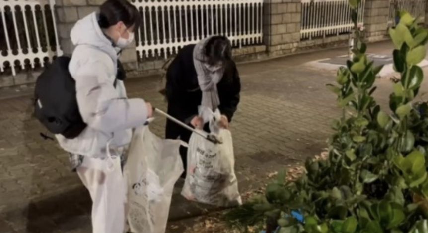 이들은 각자 대형 쓰레기봉투를 하나씩 들고 집게 등으로 쓰레기를 주워 봉투에 담았다. 한 여성이 들고 있던 쓰레기봉투는 금세 가득 찼다.